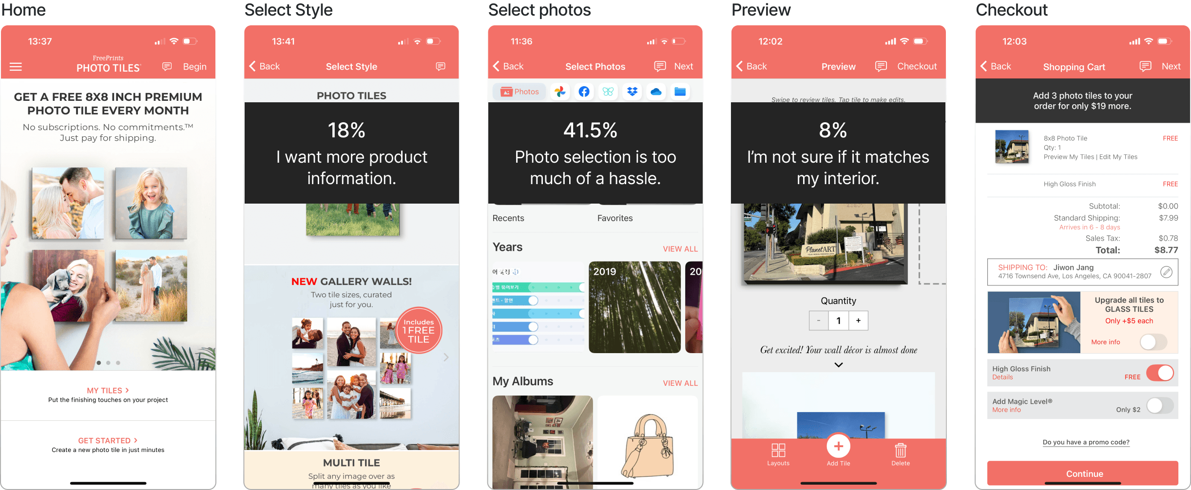 From an online survey of 1,007 UK and US users, we found that users needed additional support throughout the photo creation process. This uncertainty about the product ultimately led to a high checkout drop-off rate.