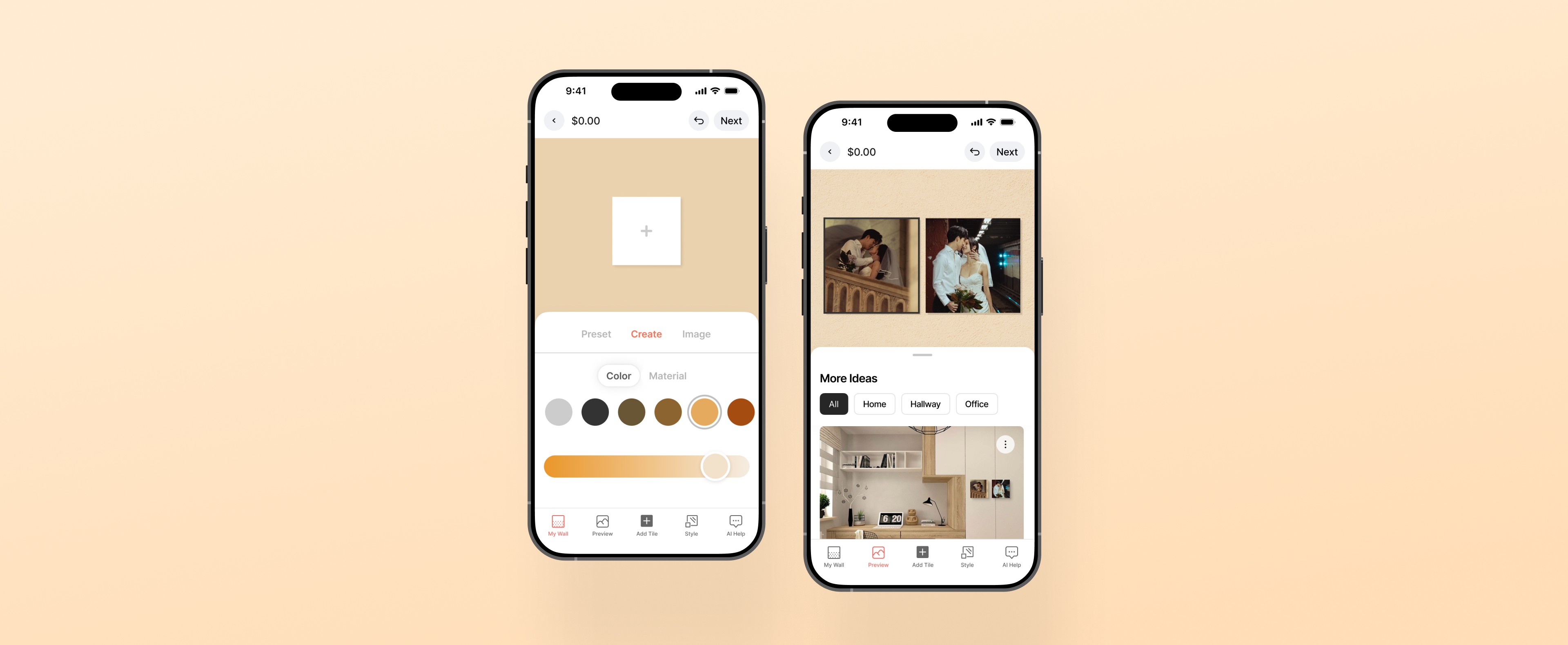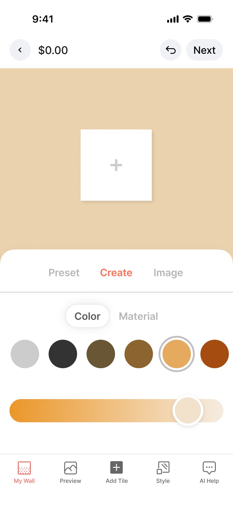If users upload a photo of their actual wall, AI extracts just the color and material.
