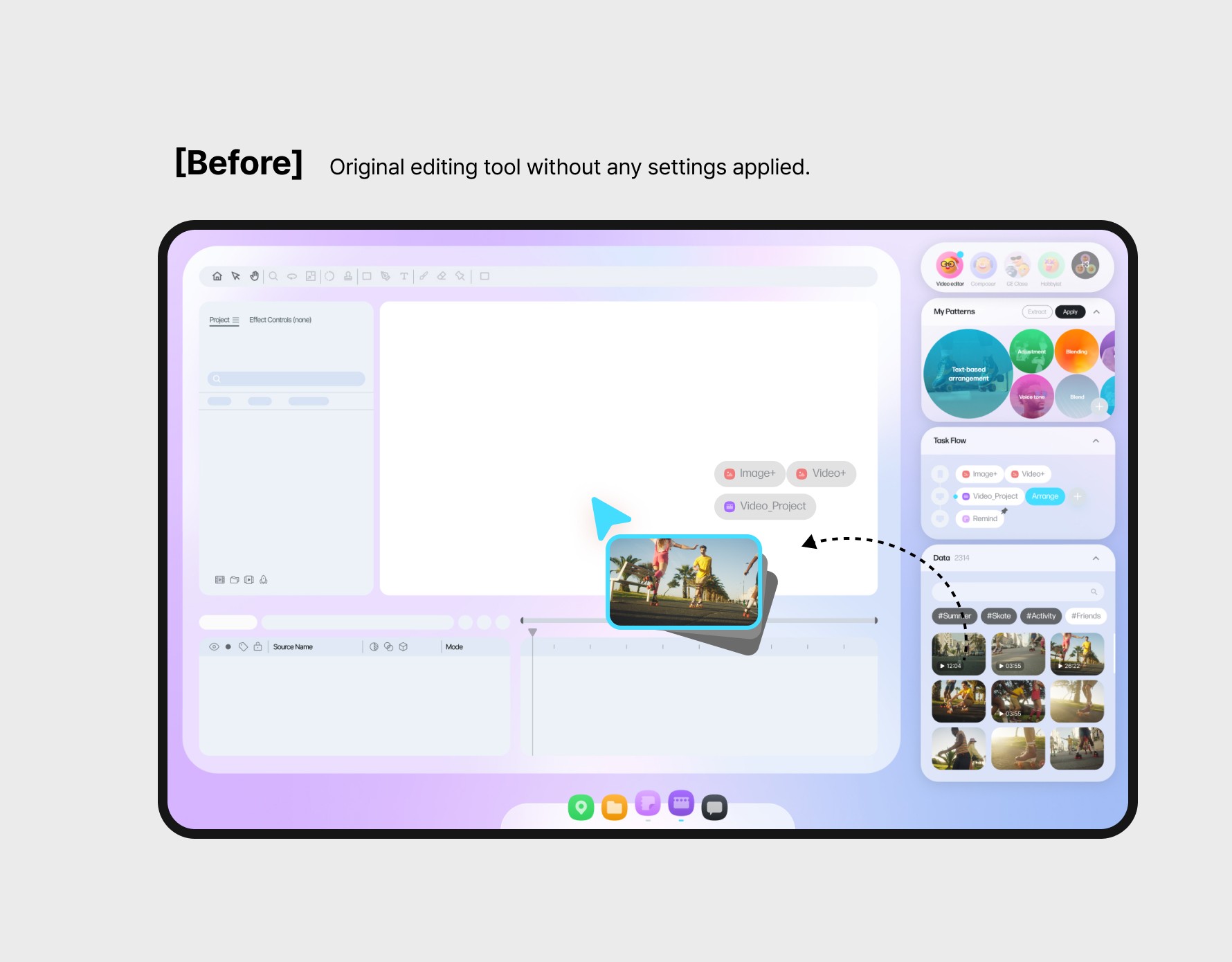 The widget panel's location varies depending on the software used. It contains not only photos and videos but also design layouts, editing techniques, and other elements reflecting the user's workflow, helping streamline tasks efficiently.