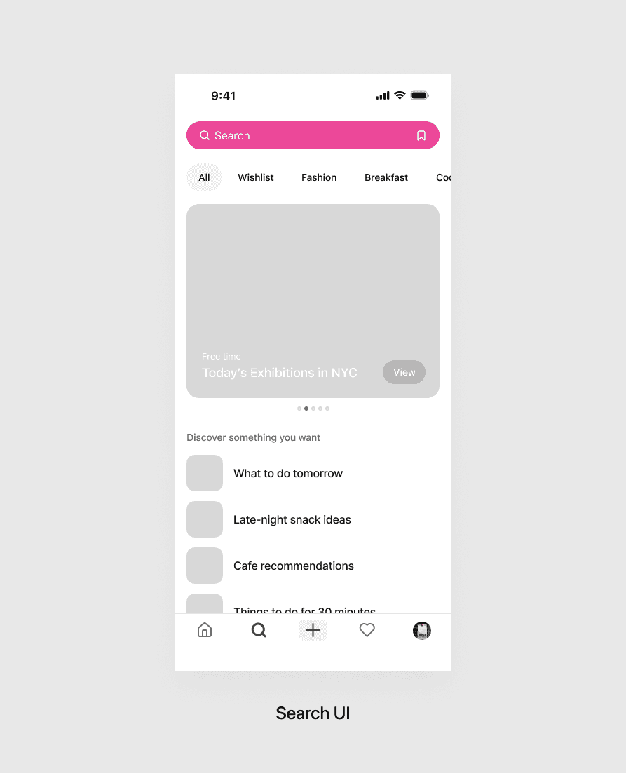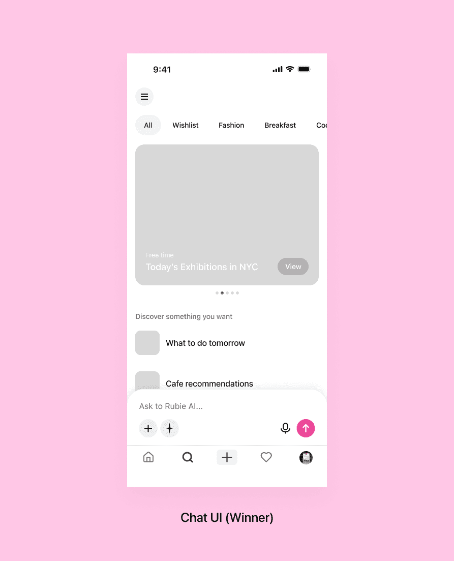 Because we chose a chat-based UI, we placed search at the bottom for maximum convenience.